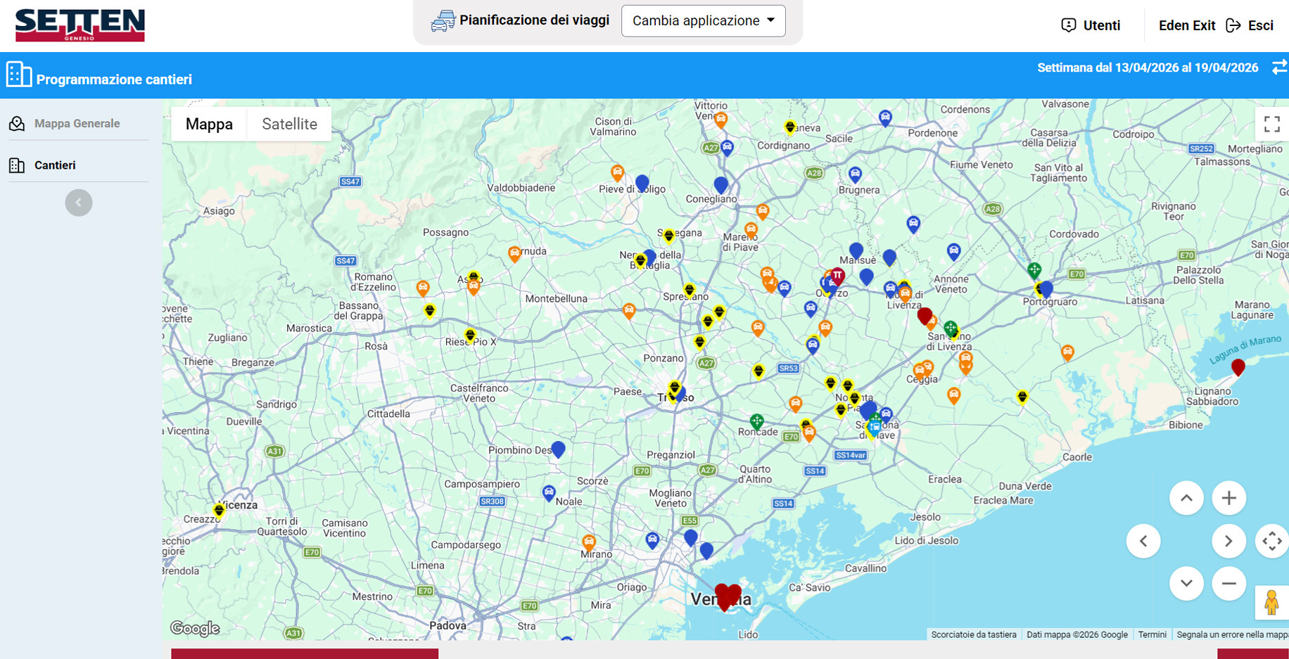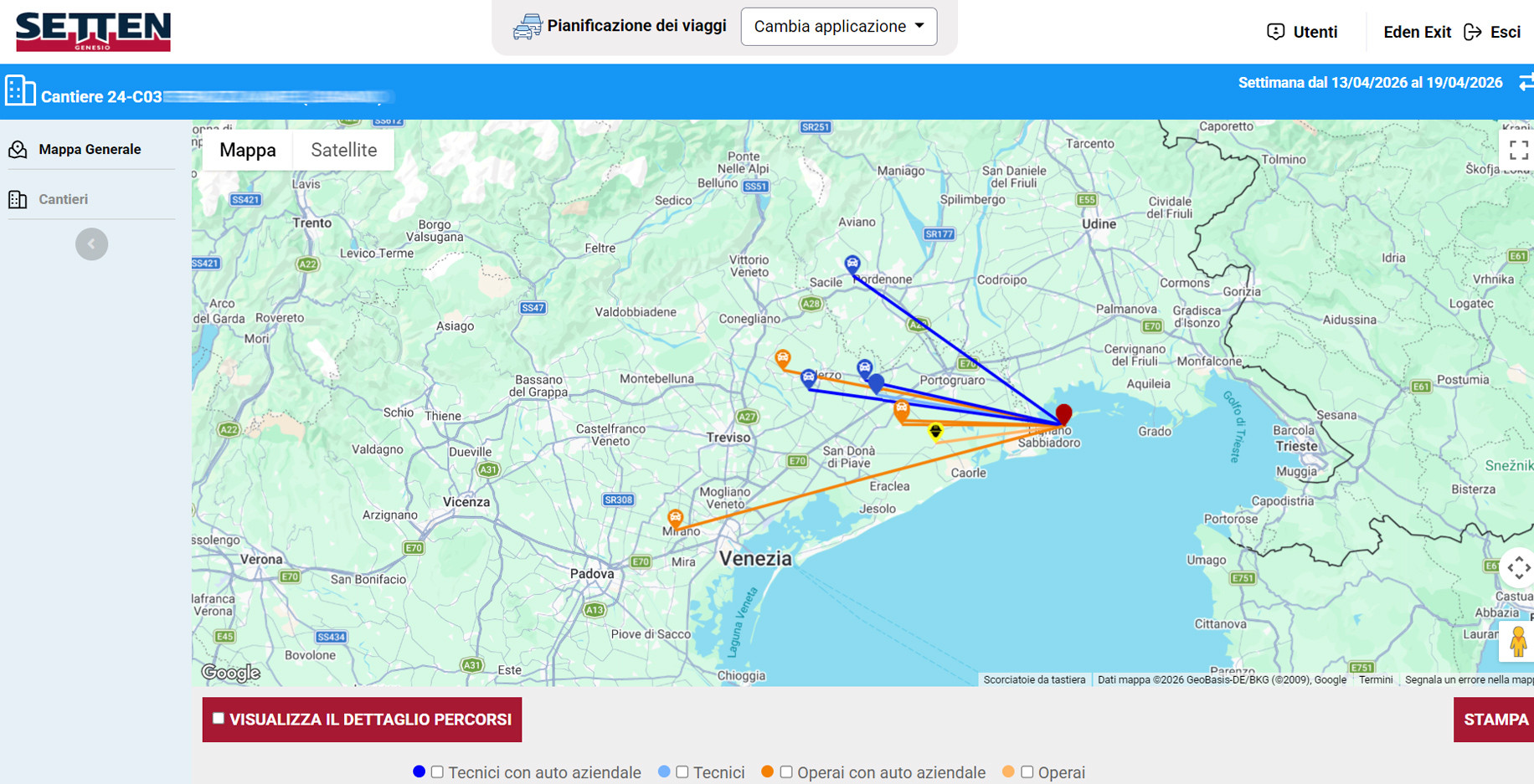 • Pianificazione Viaggi: abbiamo realizzato un sistema di ottimizzazione dei percorsi che calcola il tragitto ideale tra sedi, punti di ritrovo e cantieri per minimizzare i tempi di spostamento delle squadre.