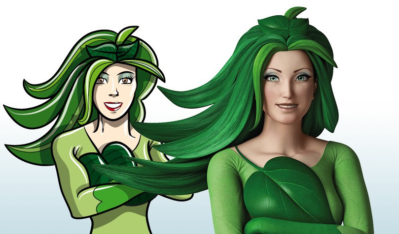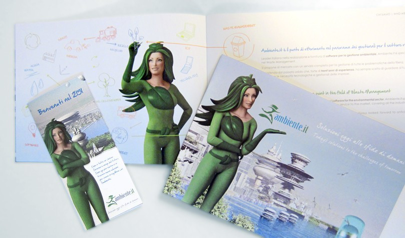Inizialmente concepita come una semplice illustrazione cartoon in due dimensioni, venne in seguito totalmente ripensata in 3D per diventare il volto di Ambiente.it e la guida ufficiale ai servizi dell’azienda.