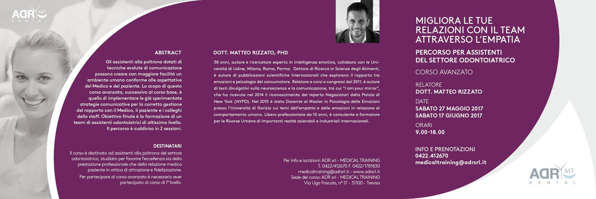 ADR è un'azienda che da molti anni organizza corsi di formazione di alto livello per studi dentistici, spaziando da argomenti prettamente tecnici a temi legati alla comunicazione con il cliente.